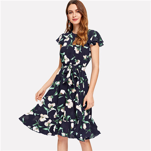 Multicolor Vacation Boho Bohemian Beach Flutter Sleeve
